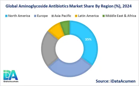 North America is expected to be the largest market for the Aminoglycoside Antibiotics Market during the forecast period, accounting for over 35.2% of the market share in 2024. The growth of the market in North America is attributed to the high incidence of hospital-acquired infections, the well-established healthcare infrastructure, and the presence of major pharmaceutical companies in the region.