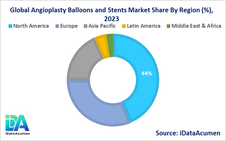 The Angioplasty Balloons and Stents market is a global industry with significant regional variations in market size and growth prospects. North America is expected to be the largest market, accounting for over 43.8% of the global market share in 2024. The growth of the market in North America is attributed to the high prevalence of cardiovascular diseases, the presence of a well-established healthcare infrastructure, and the availability of advanced medical technologies.