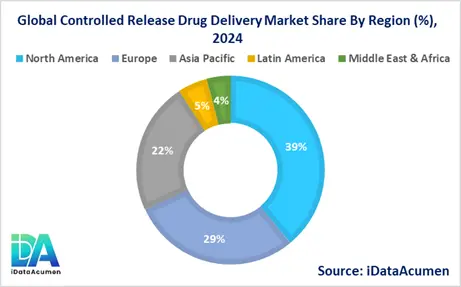 - North America is expected to be the largest market for Controlled Release Drug Delivery Market during the forecast period, accounting for over 38.5% of the market share in 2024. The growth of the market in North America is attributed to the presence of key pharmaceutical companies, robust research and development activities, and favorable reimbursement policies for advanced drug delivery systems.
